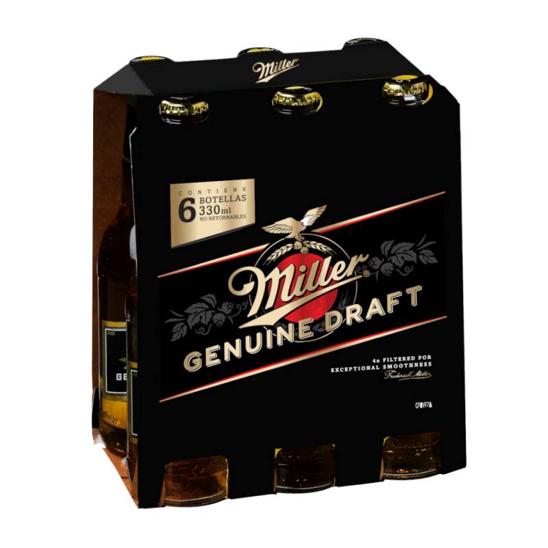 Cerveza rubia botella x330 pack Miller 6 U