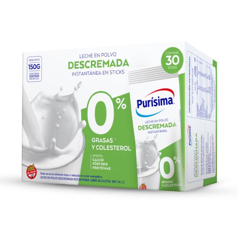 Leche polvo instantánea descremada 30x5gr sobres Purisima 150 Gr