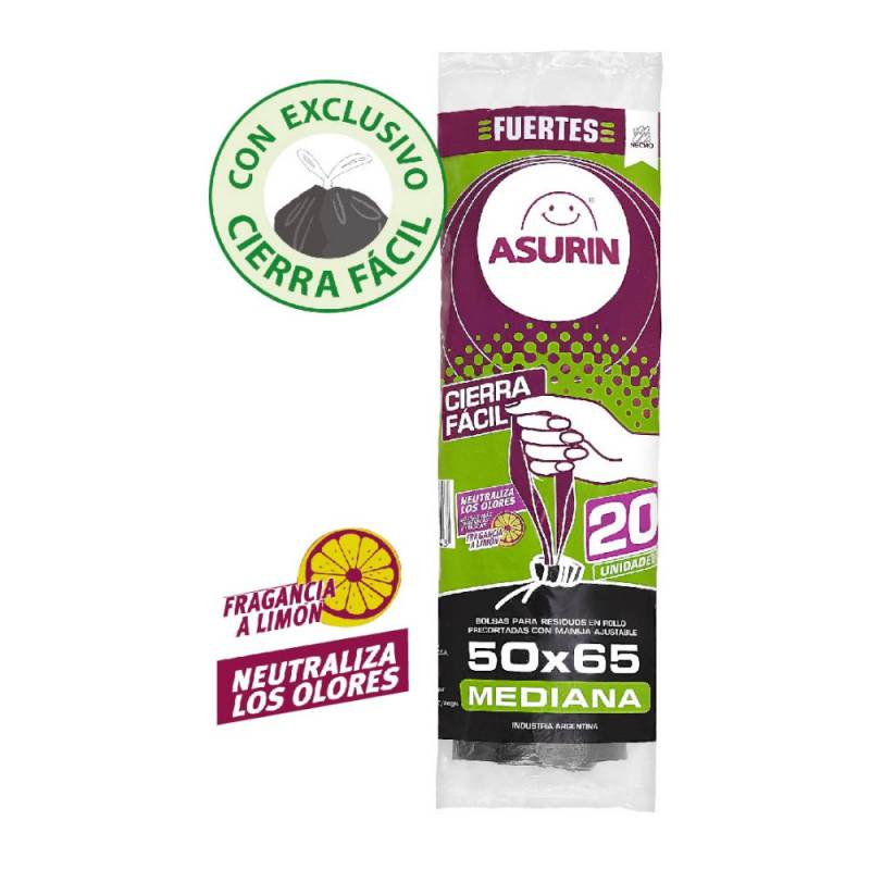 Bolsas residuos con manija 50x65 cm Asurin 20 U