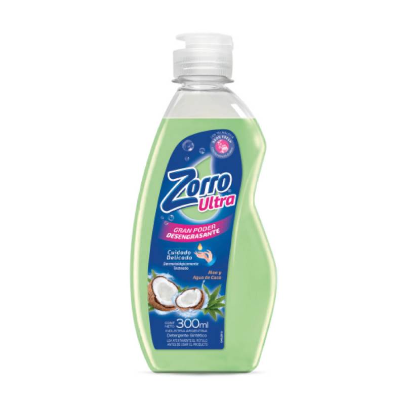Detergente líquido ultra aloe y agua coco Zorro 300 Ml