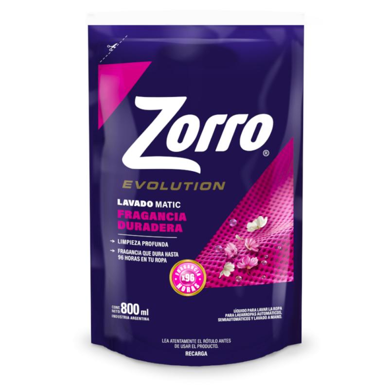 Jabón líquido lavarropas automático escudo protector doypack Zorro 800 Ml