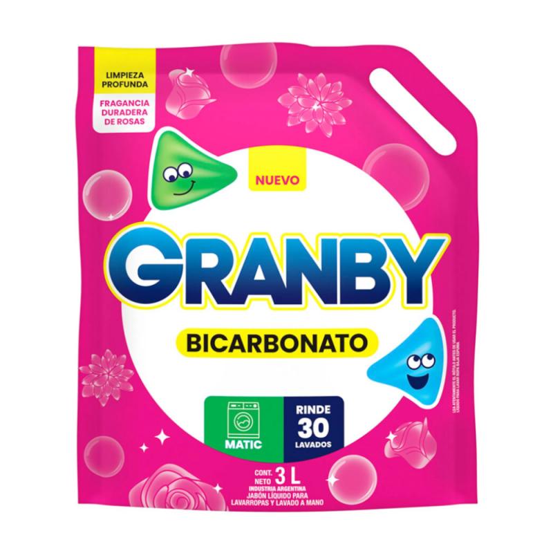 Jabón líquido lavarropas automático rosas - doypack Granby Matic 3 Lt